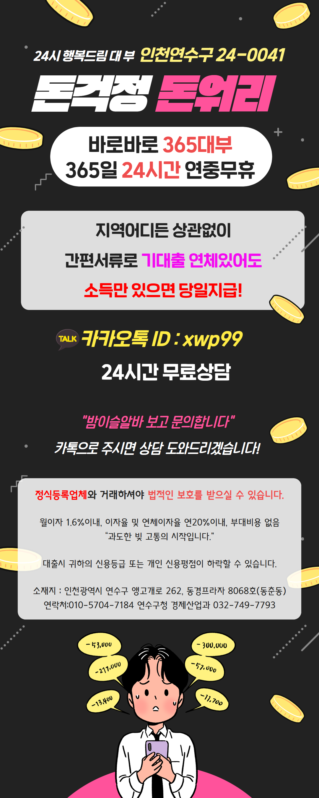 본 정보는 바로365대부에서 제공한 자료이며, 밤여우알바는 기재된 내용에 대한 오류와 사용자가 이를 신뢰하여 취한 조치에 대해 책임을 지지 않습니다. 또한 누구든 본 정보를 밤여우알바의 동의 없이 재배포 할 수 없습니다.
